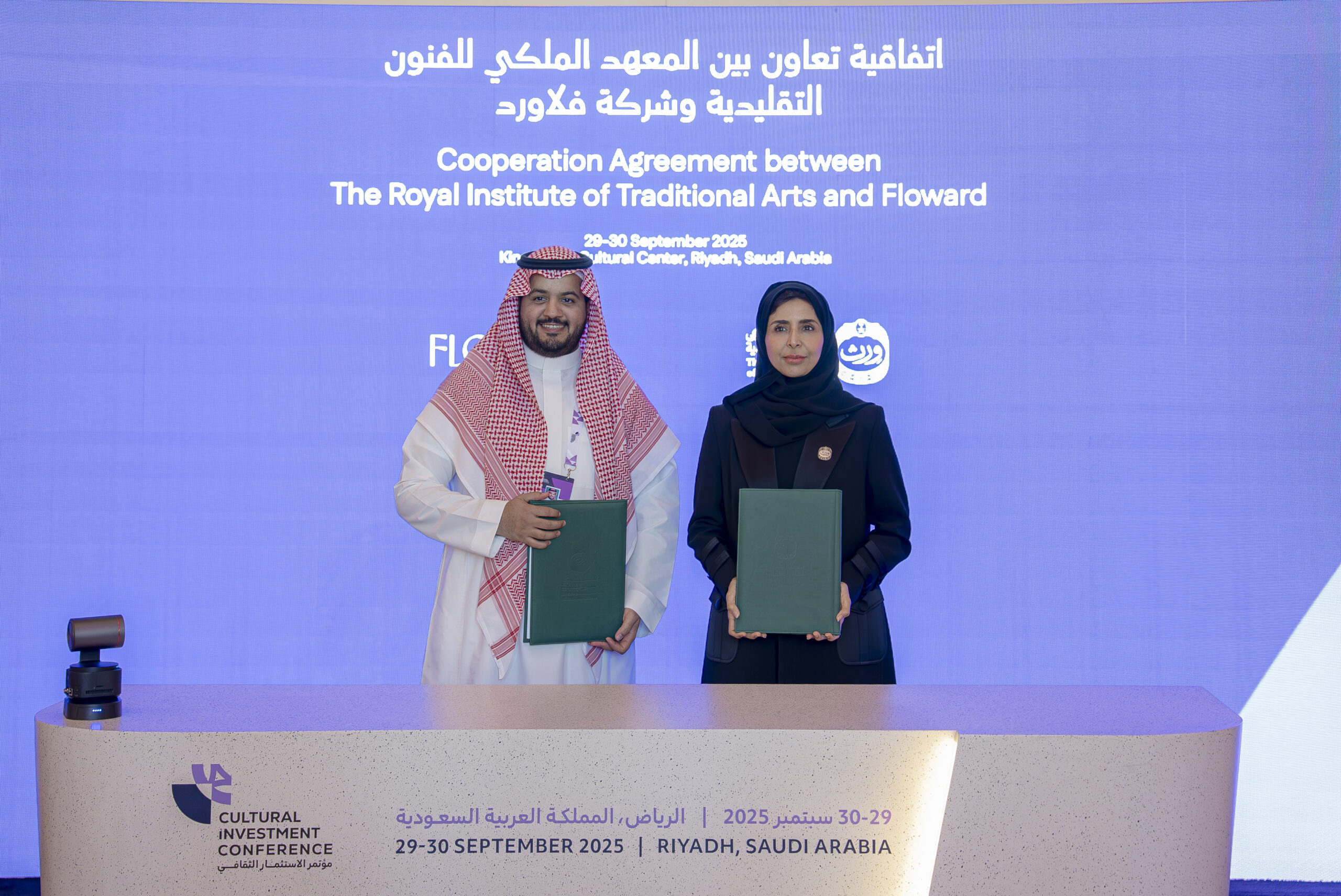 وفي إطار هذا التعاون، وقع كل من الرئيس التنفيذي للتشغيل في فلاورد، السيد محمد العريفي، والرئيس التنفيذي المعهد الملكي للفنون التقليدية (ورث)، الدكتورة/ سوزان محمد اليحيى، اتفاقية الشراكة يوم الثلاثاء الموافق 1 أكتوبر، وذلك خلال مؤتمر الاستثمار الثقافي الذي نظمته وزارة الثقافة في مركز الملك فهد الثقافي بالرياض.